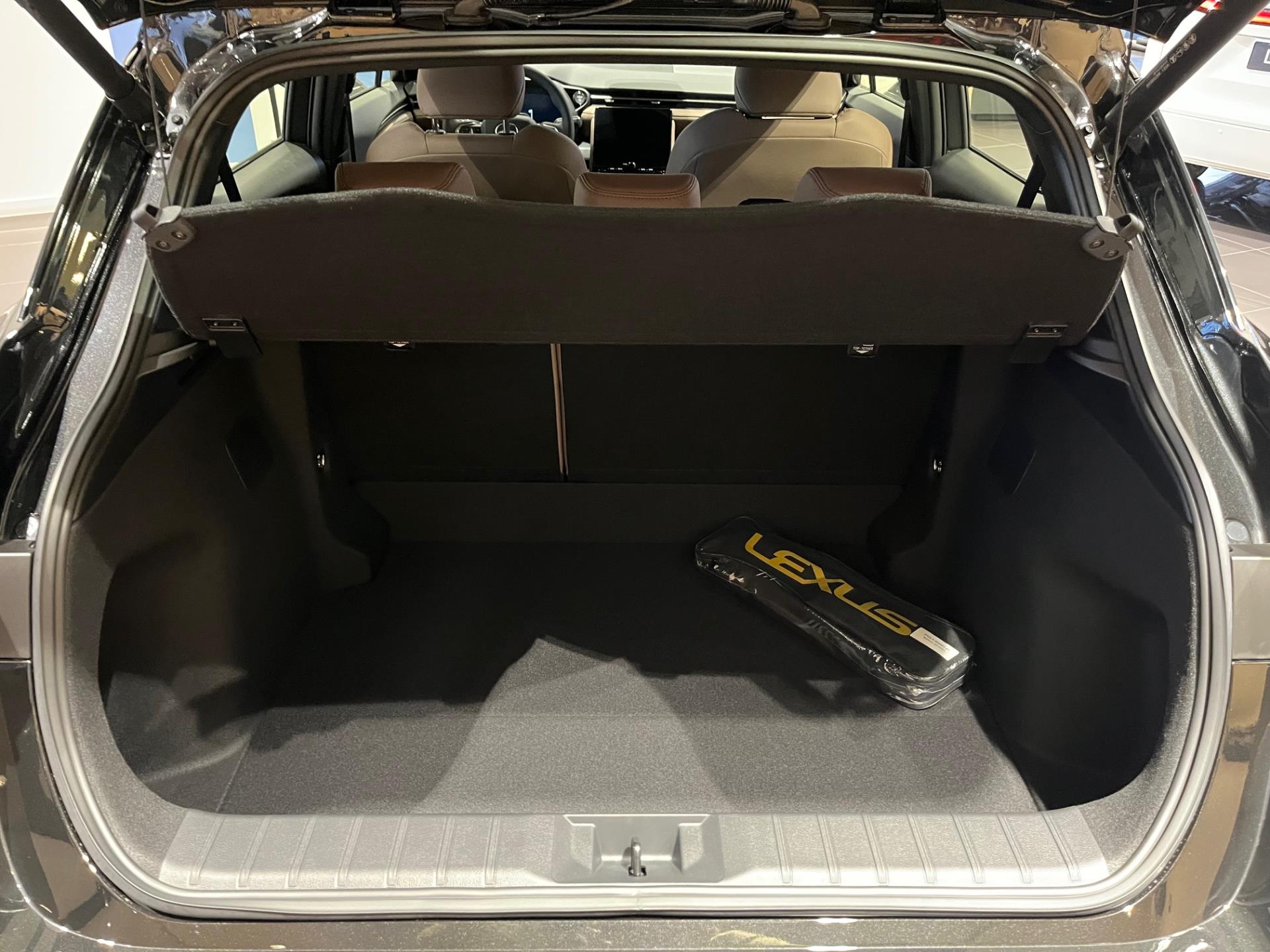 BEZPEČNOST A OCHRANA • Lexus Safety System +3: –Přednárazový bezpečnostní systém (PCS) –Proaktivní asistent řízení (PDA) –Dynamický adaptivní tempomat (DRCC) –Asistent při opuštění jízdního pruhu (LDA) –Asistent udržování v jízdním pruhu (LTA) –Automatické ovládání dálkových světlometů (AHB) –Asistent nouzového zastavení (EDSS) –Rozpoznávání dopravních značek (RSA) • Zadní parkovací kamera • Systém monitorování řidiče (DMC) • Inteligentní parkovací senzory vpředu i vzadu • Upozornění na vozy přijíždějící ze strany vzadu s brzdnou funkcí (RCTAB) • Ostřikovač parkovací kamery • Automatické rozblikání brzdových světel při nouzovém brzdění (FHL) • Asistent bezpečného vystupování (SEA) • Systém sledování slepého úhlu (BSM) EXTERIÉR • Světlomety: –LED světlomety vč. systému AHB • Skla: –Dešťový senzor • Pneumatiky a kola: –18“ litá kola, design Elegant&Relax –Pneumatiky 225/55 R18 • Vnější zpětná zrcátka: –Automaticky sklopitelná, elektrochromatická (řidič) • Další prvky exteriéru: –Hmotnost přívěsu, 750 kg INTERIÉR A POHODLÍ • Sedadla: –Čalounění sedadel: syntetická kůže Tahara –Čalounění sedadel: perforovaná syntetická kůže Tahara –Manuálně nastavitelná sedadla, výškově nastavitelné sedadlo (řidič + spolujezdec vpředu) –Bederní opěrka nastavitelná ve dvou směrech (řidič) –Vyhřívaná přední sedadla –Sportovní sedadla • Interiér: –Manuálně nastavitelný volant –Vyhřívaný volant –Obložení palubní desky: syntetická kůže –Elektrochromatické vnitřní zpětné zrcátko –Provedení interiéru bez živočišného materiálu (Vegan Friendly) –Ionizátor vzduchu s technologií nanoe™ X –Prostorové vnitřní osvětlení • Další prvky: –Dvouzónová klimatizace –Bezklíčový přístupový systém SmartEntry –Elektricky ovládané víko zavazadlového prostoru –Bezdrátová nabíječka telefonu AUDIO A KOMUNIKACE • Služby Lexus Connected: –Dálkově ovládaná klimatizace –Funkce „Najít vůz“ –Hybridní koučování –Monitoring údržby a servisu vozu • 9,8“ dotykový displej • USB konektor vpředu (2), vzadu (2) • 12,3“ virtuální kokpit Tazuna • Prémiový audiosystém s 6 reproduktory • Rádio DAB (Digital Audio Broadcasting) • Integrace telefonů (bezdrátové Apple CarPlay® & Android Auto™ pomocí kabelu) • Hlasové ovládání “Hey Lexus“ v českém jazyce • Cloudová navigace Lexus Link • Aktualizace systému „Over-The-Air“