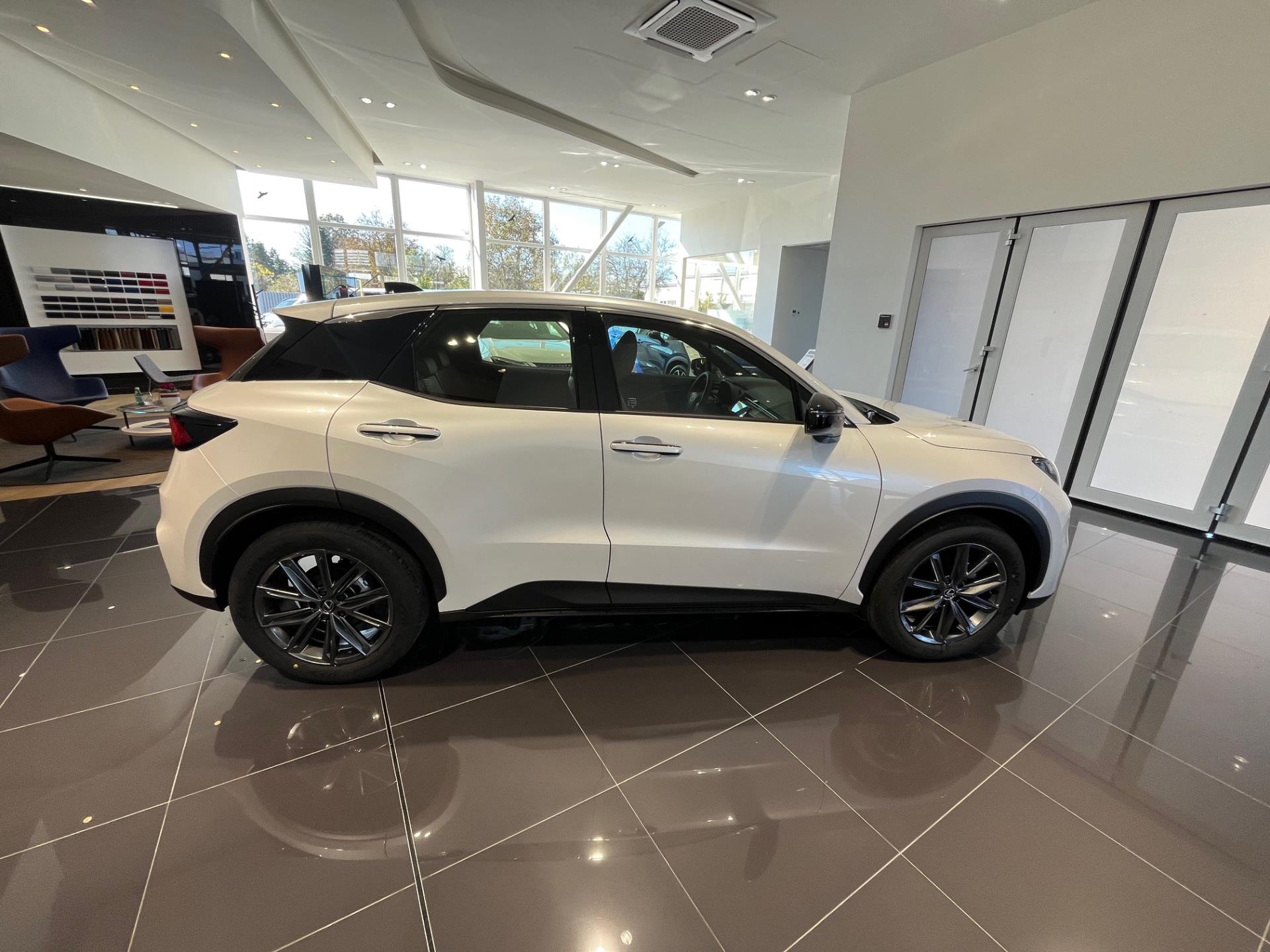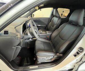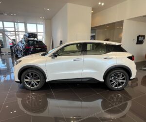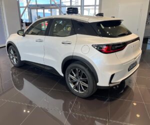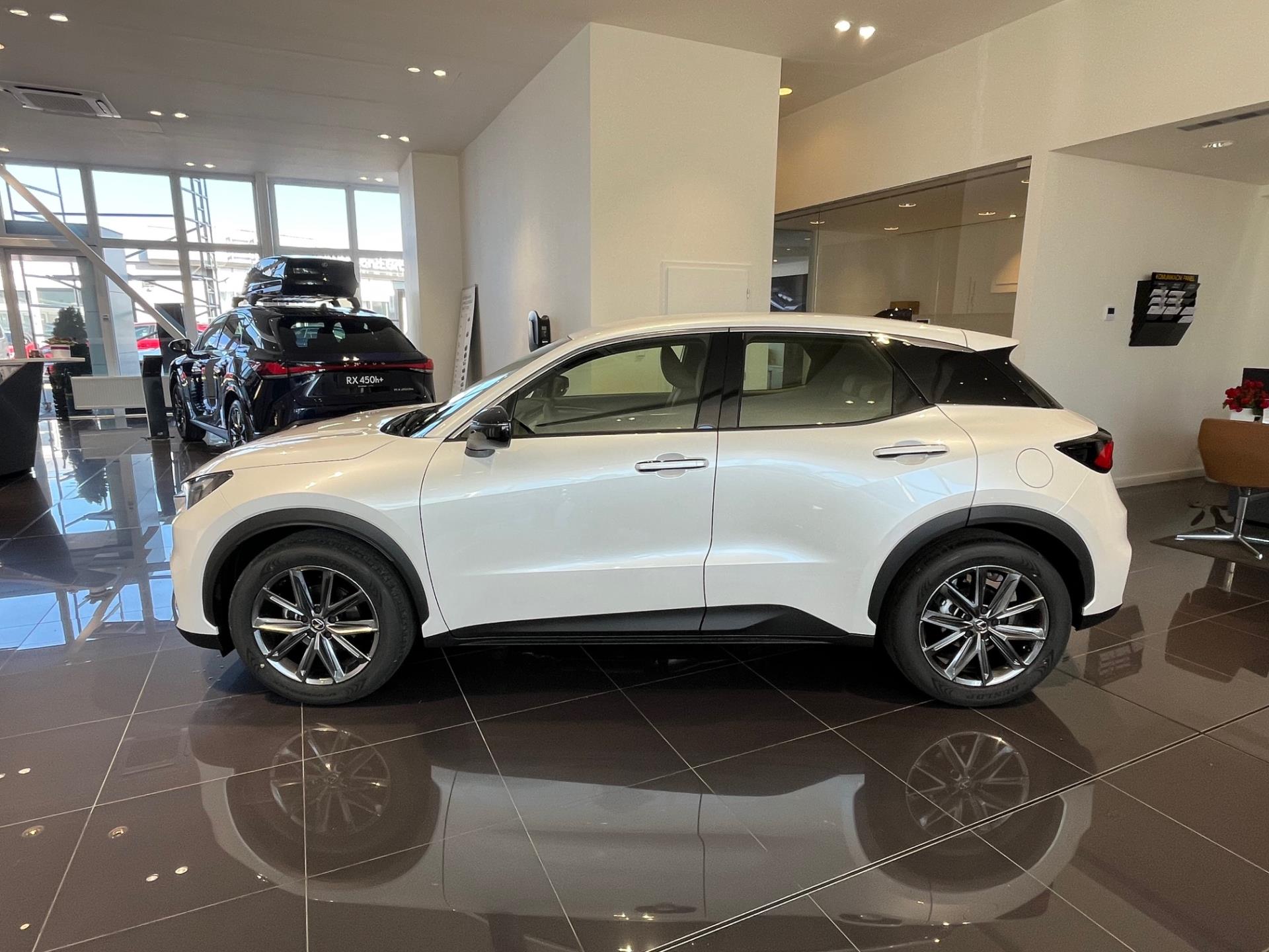 Vozidlo LEXUS LBX ve výbavě Elegant Tech Black, Barva: Bílá sonic (085) , Interiér: Černá (červené prošívání) Perforovaná syntetická kůže Tahara (EA 20)
