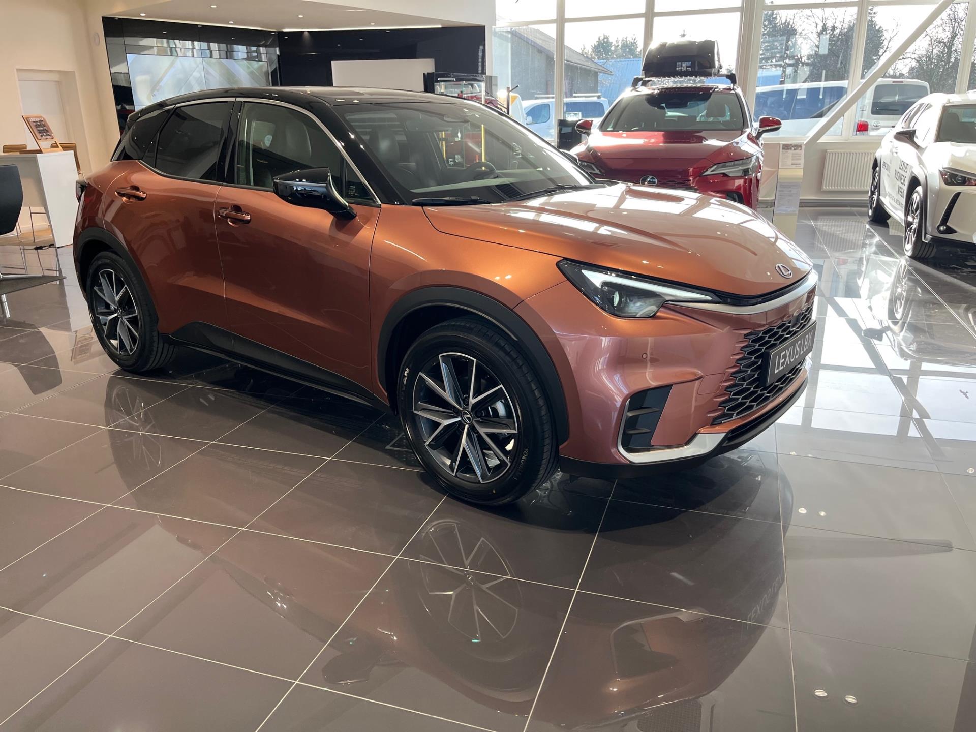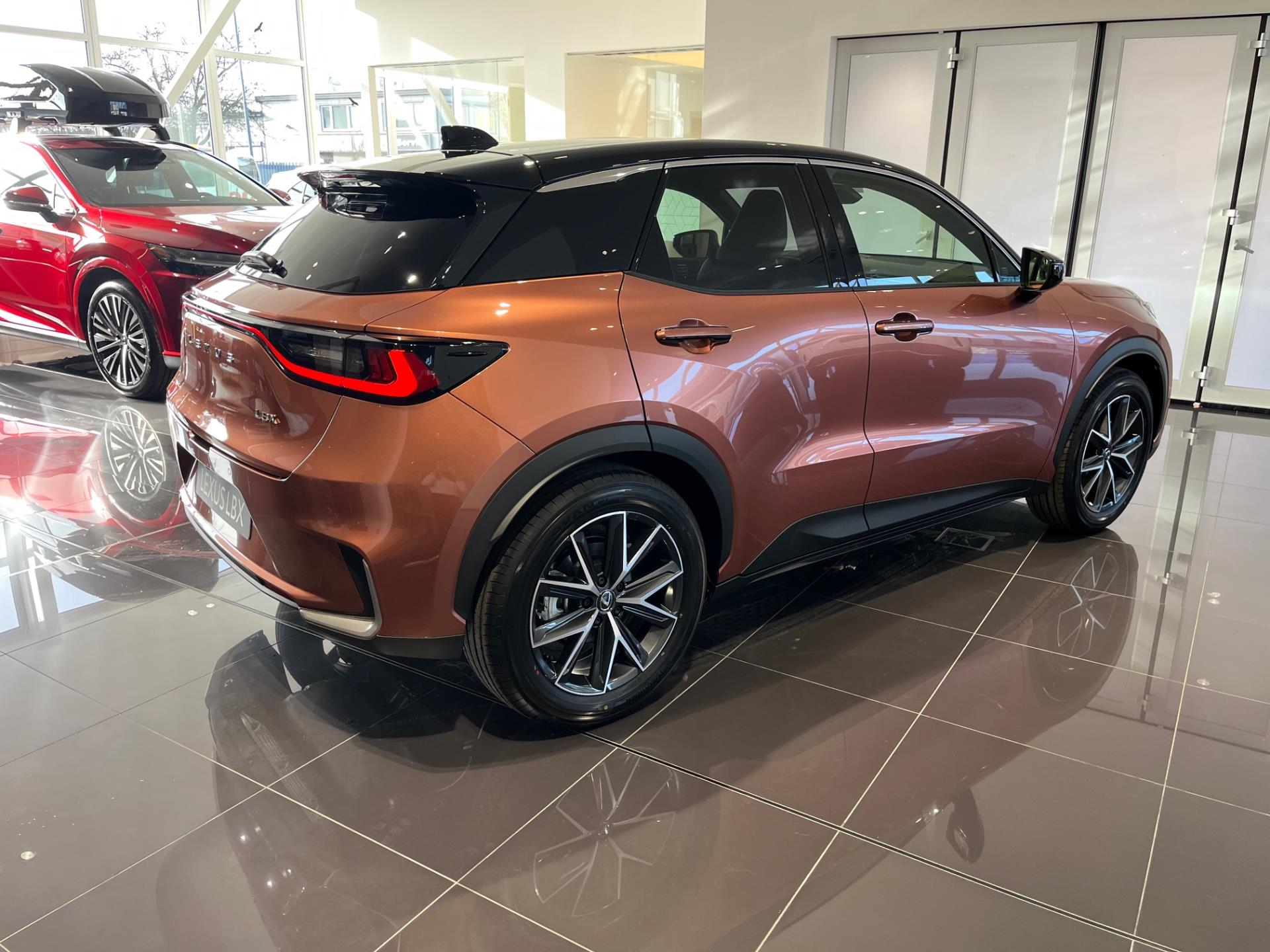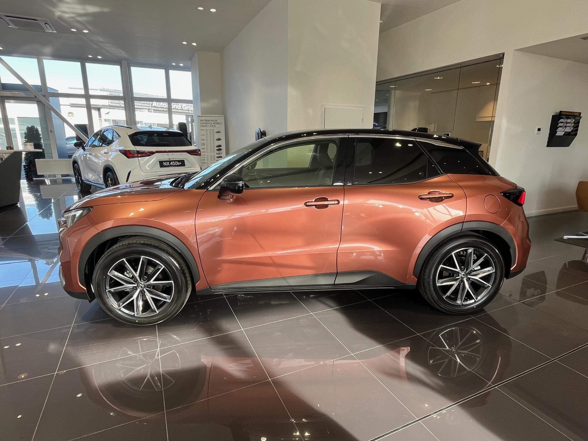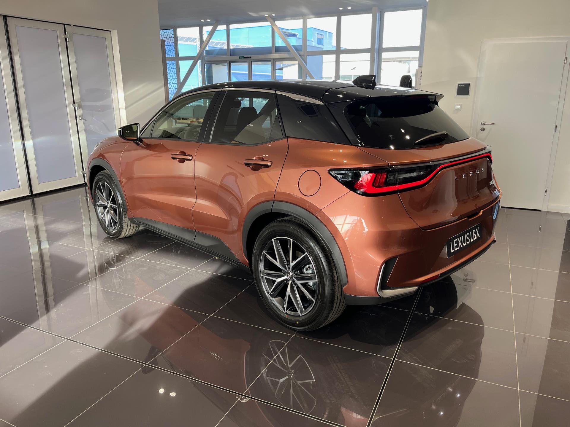 Vozidlo LEXUS LBX (2×4) ve výbavě: EMOTION TECH, Barva: Měděná Sonic (2YF), Interiér: Černá (červené prošití) (EA20)