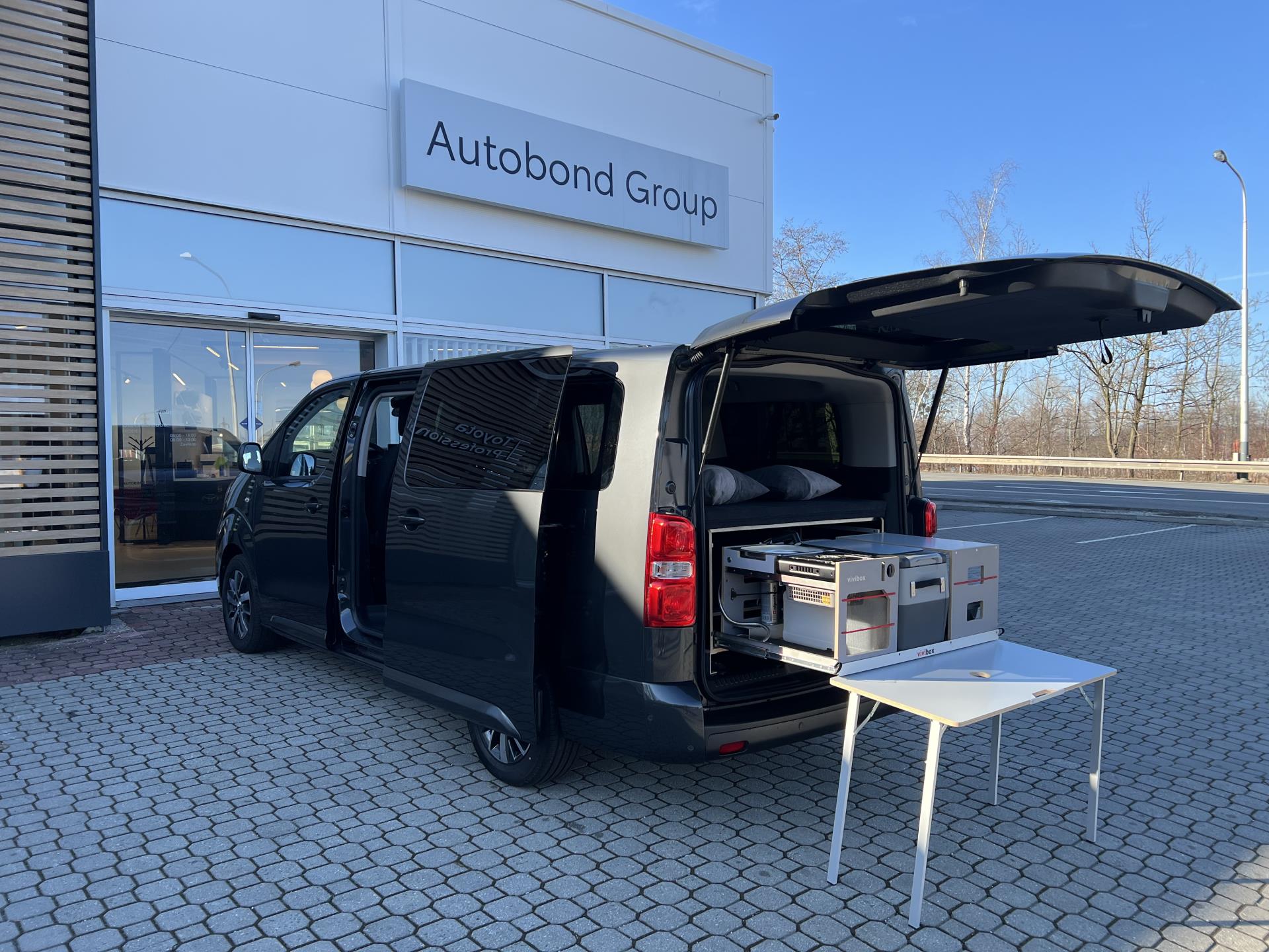 AKČNÍ SLEVA 314 000Kč na tento automobil s obytnou vestavbou VIVIBOX a nezávislým horkovzdušný topením v celkové hodnotě 136 000Kč s DPH! V ceně vozu otočné sedadlo spolujezdce a zádržný systém v zavazadlovém prostoru. Vůz ihned k odběru na pobočce Toyota Ostrava Svinov, Opavská 798/4 toyotasvinov@autobond.cz 596 420 043. Nejedná se o návrh na uzavření smlouvy (nabídku) dle § 1731 zákona č. 89/2012 Sb., občanský zákoník, ale o nezávaznou nabídku.